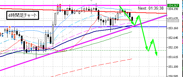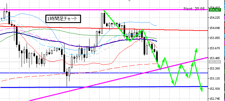 - 重要サポート153.00円を割り込めば、心理的節目150円方向への下げが加速。