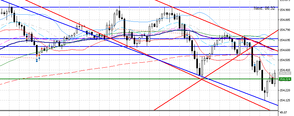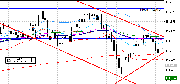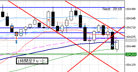 大きく反発した後に上位足方向にすぐ押し戻されて154.125まで下がっていました(/ω\)