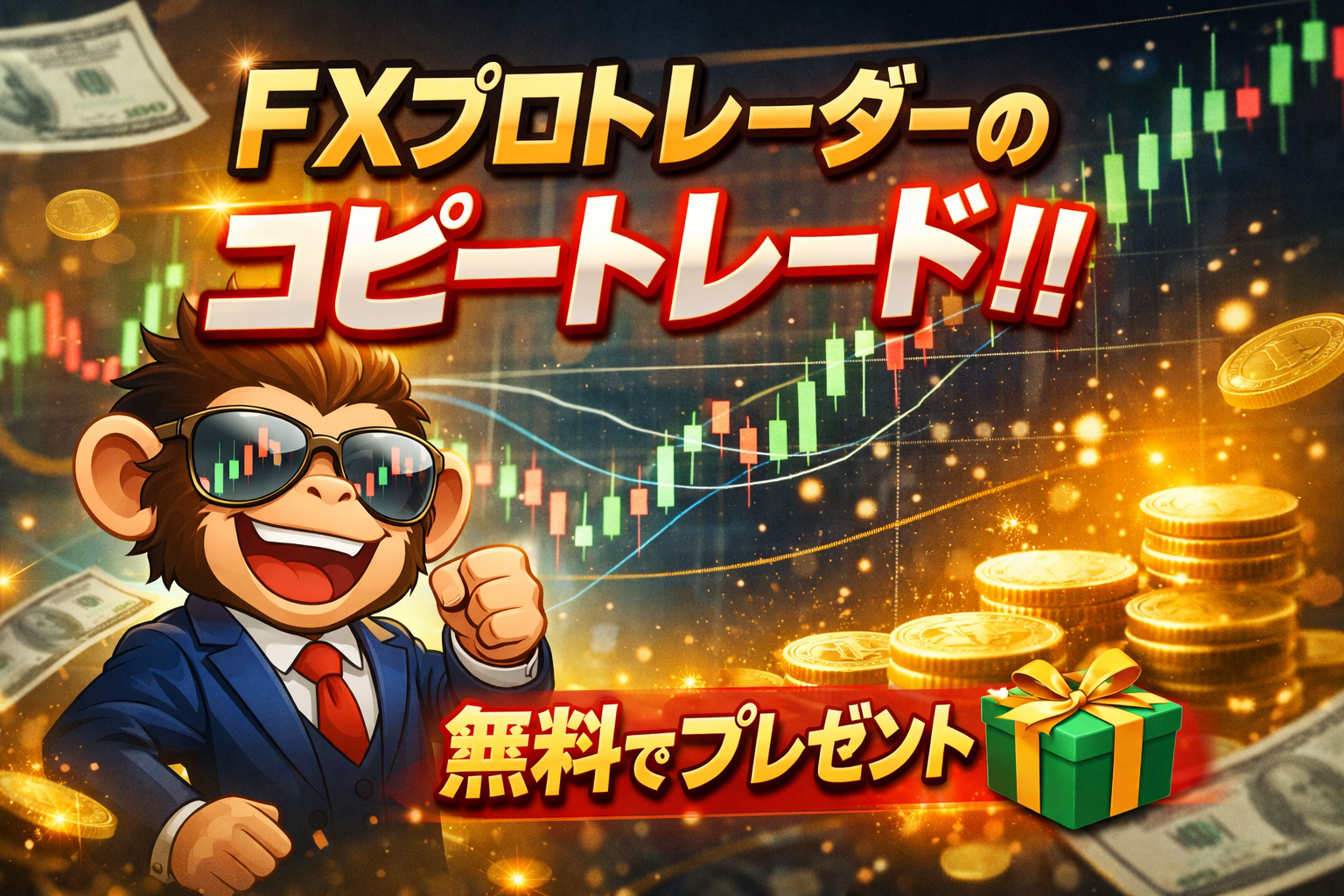 モンキチから“プロトレーダーのコピートレードができる先読み配信のFX公式LINE”に無料(※条件付き)でご招待します。