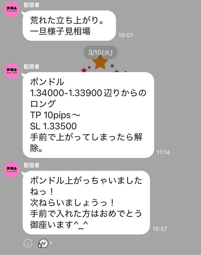 ① 先読みFX公式LINE内では、