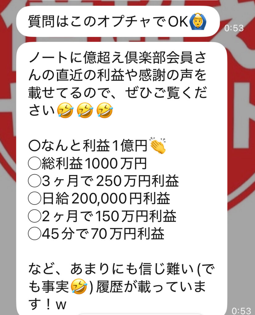 👉「億トレーダーです」、「参加者がぞくぞくと資産を増やしています!」と誇張した動画で強くアピールしてきました。
