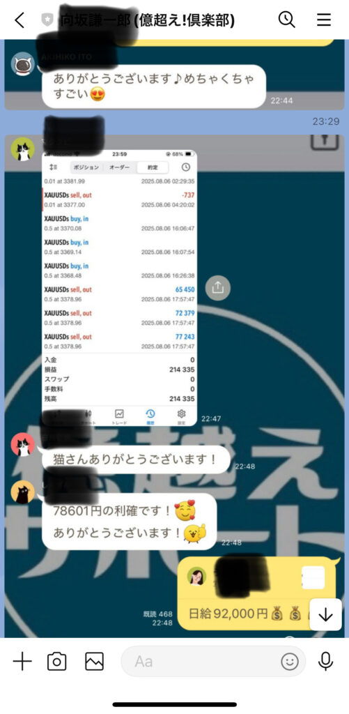 しかも、夜22時前になると一度だけスキャルピングのトレード配信があるらしく、信者たちが騒ぎ出しますw