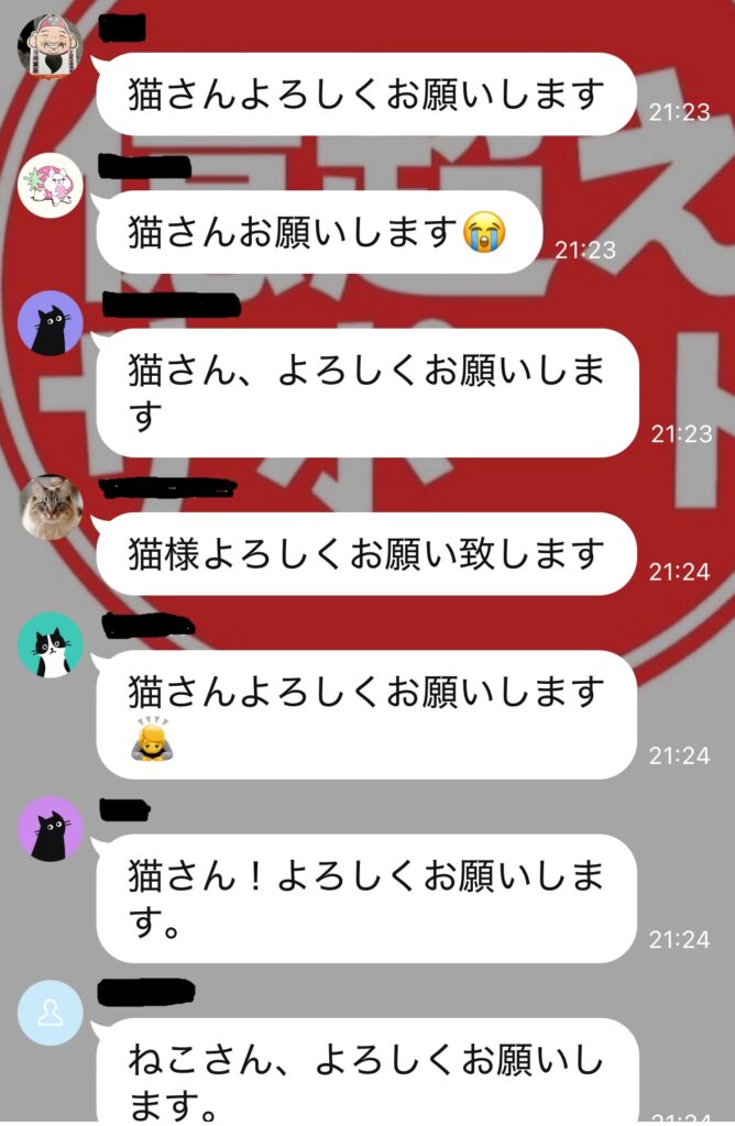 テストに合格して、やっとLINEグループへ。